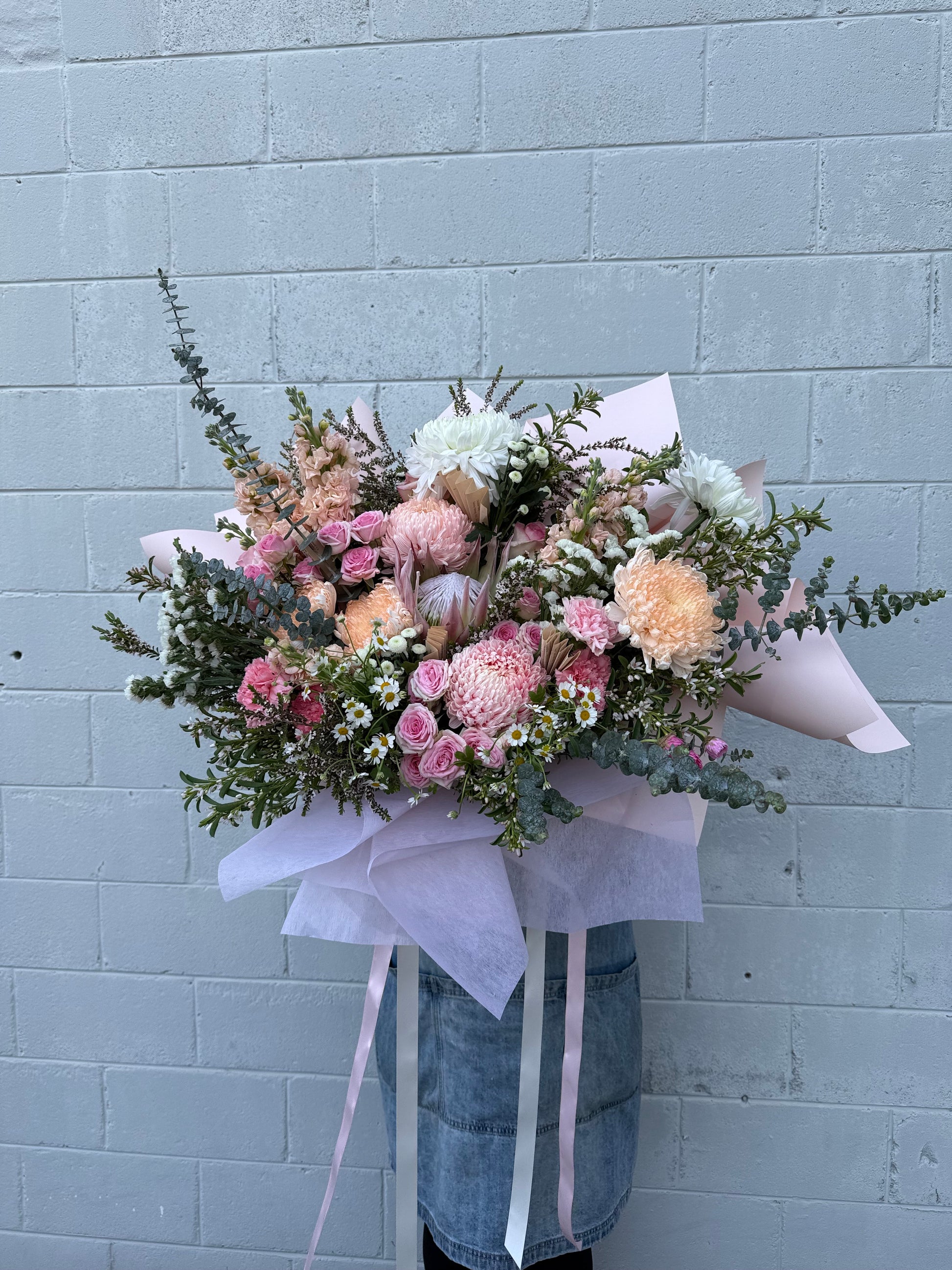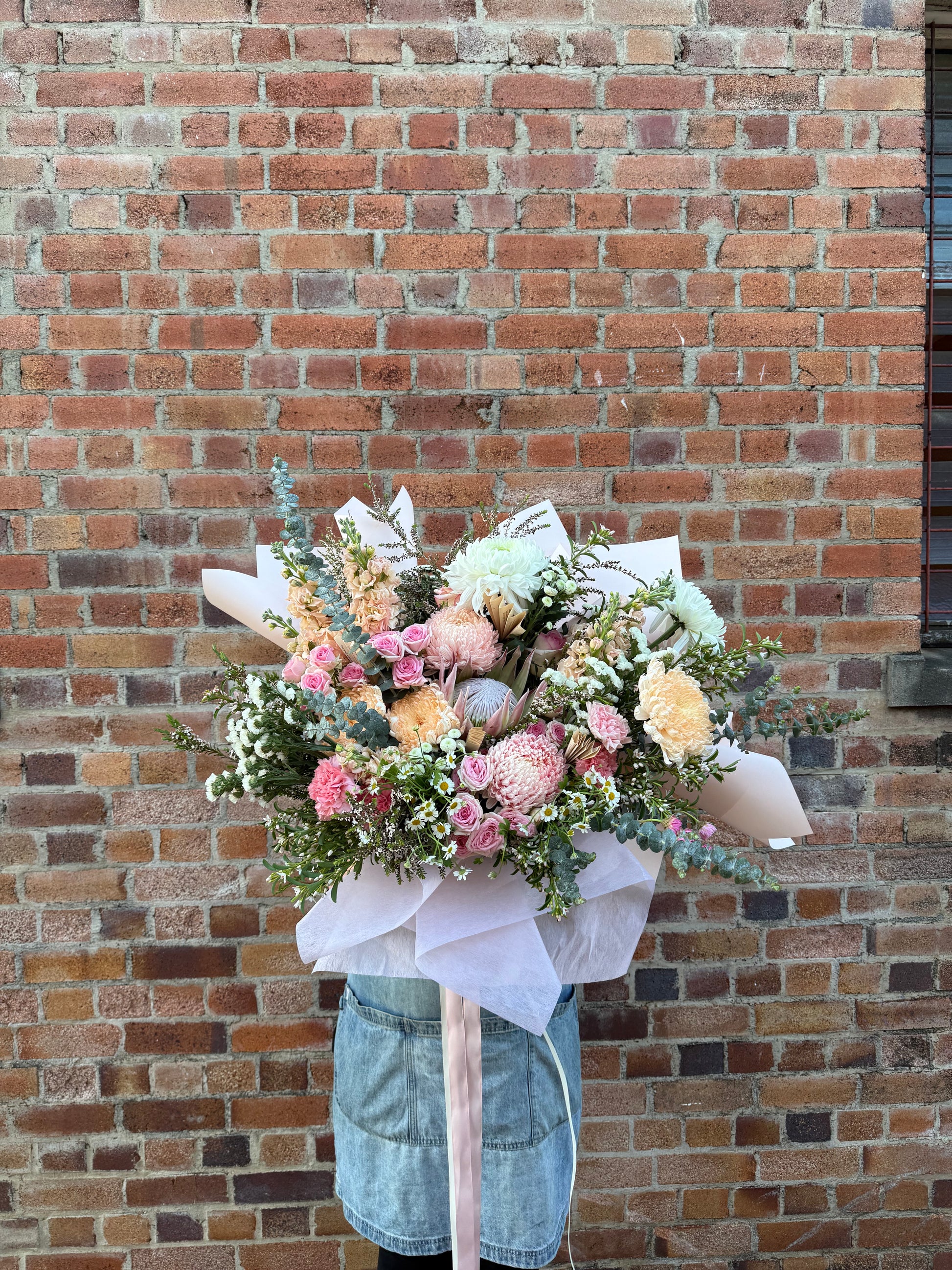Please Note: This arrangement is our largest arrangement and requires a large qty of blooms – please ensure to order a week in advance to ensure we can fulfill your request.